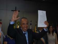 Ele fez juramento, assinou termo e recebeu faixa de Edvaldo